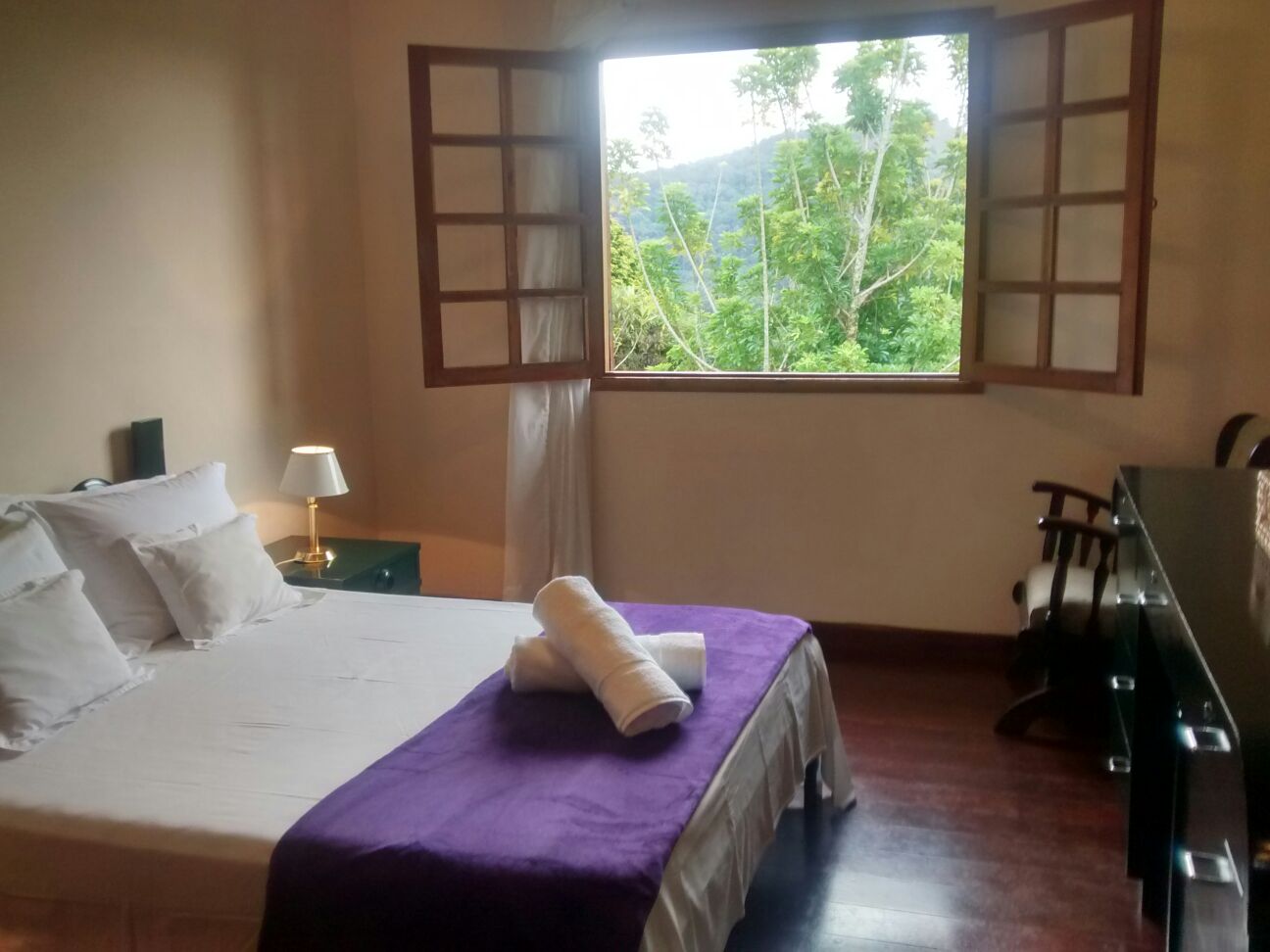 Os quartos têm vista para o jardim e para a linda vegetação de mata e campestre da região.